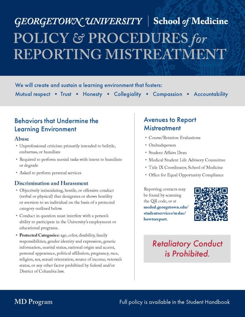Policy and Procedures for Reporting Mistreatment at Georgetown University School of Medicine